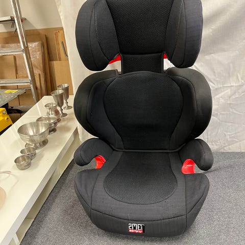 Två bilbarnstolar av märkena Britax och BeSafe, båda bakåtvända modeller i svart tyg. Stolarna har fempunktsbälte och sidostöd för barnet. Den ena stolen har stödben mot golvet och justerbar lutning. Passar montering i bilens baksäte enligt respektive tillverkares anvisningar. Lämpliga för barn som vuxit ur babyskydd men fortfarande ska åka bakåtvänt. Kontrollera alltid bilens kompatibilitet och stolarnas godkännandemärkning före användning.