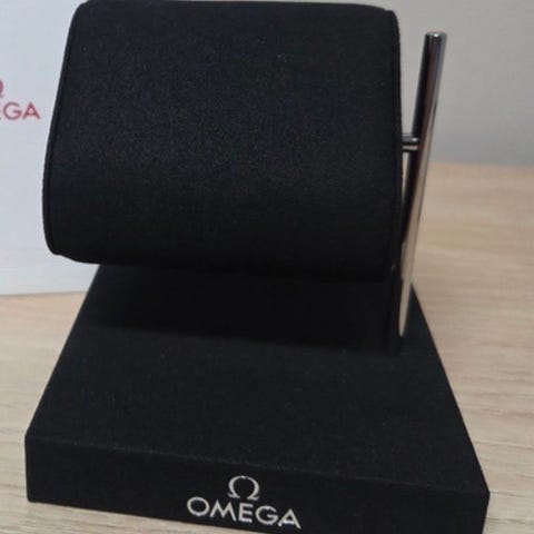 Säljer ett fint och välvårdat mekaniskt tidtagarur från anrika Omega. Detta är en klassisk modell med den eftertraktade svarta urtavlan och kontrasterande gul underskala, troligen från slutet av 60-talet eller början av 70-talet.