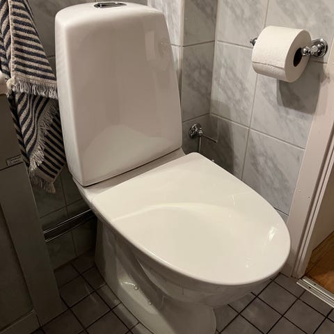 Toalettstol i vitt porslin av Gustavsberg. 4 år gammal.