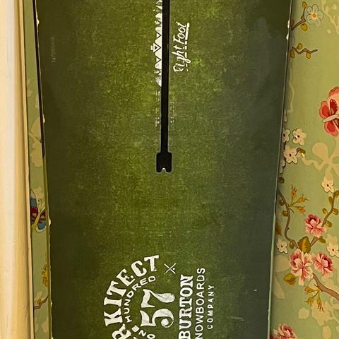 Brädan har Burtons The Channel-system och bindningarna sitter monterade och klara. Bara att ta med upp på fjället och börja åka!