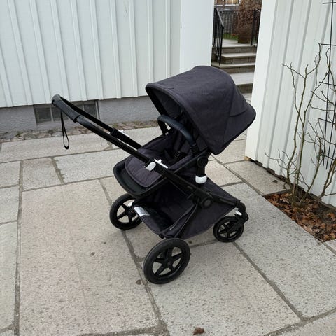 Säljer vår sparsamt använda Bugaboo Buffalo med svart chassi och grå sufflett. Liggdel+ sittdel ingår.