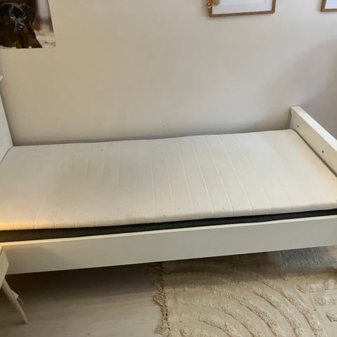 Säljer vår gästsäng, 90 cm bred, med förvaring från IKEA i modellen IDANÄS. Den har använts sparsamt några gånger per år och är i nyskick. Säljes med stommen, förvaring under och ribbotten för 2 000 kr, madrass ingår dvs ej.