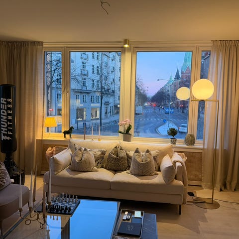 Fina måttbeställda gardiner från Gotain säljes! Gardinerna hängs i takskena och är 280 cm långa med ett snyggt lätt släp. De har även uppläggning, så det går att lägga ner och få upp till ca 10 cm extra längd. Gardinerna är i superfint skick och ser ut som nya.