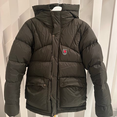 Fjällräven dunjacka för herr i storlek M. Jackan är svart och vadderad med dun. Modellen har huva, hel dragkedja med knappslå samt framfickor. Passar som varm ytterjacka under kalla vinterdagar. Nypris 7499 kr, nu 4500 kr