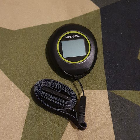 Nyckelband med handledslås, verktyg för deklinationskorrigering, snäpplås och snabbguide.