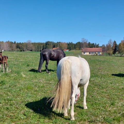 Vi har plats på mycket bra lösdrift till sto och valack (separata hagar). Alltid fri tillgång på grovfoder, kraftfoder och morötter en gång om dagen. Uppvärmt vatten och ligghallar med halm. Ridbana, sadelkammare, wc, skötselplats och boxar finns. Detta är en harmonisk lösdrift där även hästar som är låga i rang trivs. De har stora ytor och mat på flera ställen så alla får sitt. Sandytor runt mat och ligghallar så vi slipper lera. Kallhyra 2000:-, mat, mm tillkommer med ungefär detsamma (oftast runt 1800). Man hjälper till en dag i veckan eller betalar 600:- extra för full skötsel. Vi kan ta in till hovslagare, mm.