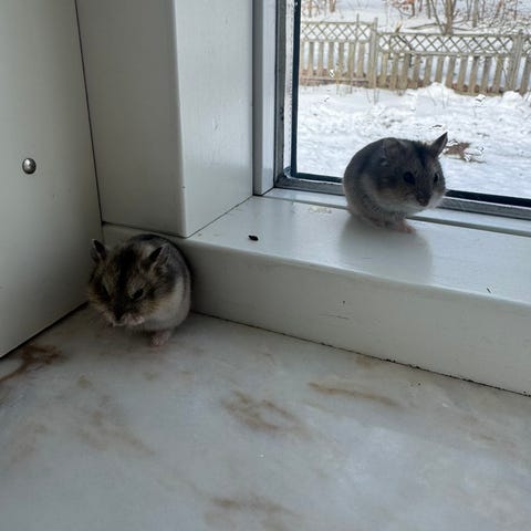 Vi säljer två vita dvärghamstrar pga. allergi. De har bott hos oss i ca ett år och har beräknad livslängd på runt två år. Perfekt för den som vill testa på att ha hamstrar för första gången! Vi söker kärleksfullt hem!