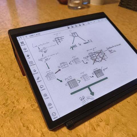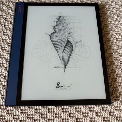 Onyx Boox Note Air 2 Plus, 64 GBläsplatta med penna i grått. E‑ink-skärm anpassad för läsning av e‑böcker, dokument och anteckningar. Enheten har pekskärm och medföljande stylus för handskrift och skisser direkt på skärmen. Grått skyddsomslag/fodral ingår enligt bild. Lämplig för läsning, anteckningar, dokumenthantering och enklare ritning.