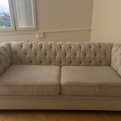 Grå sammet chesterfield soffor