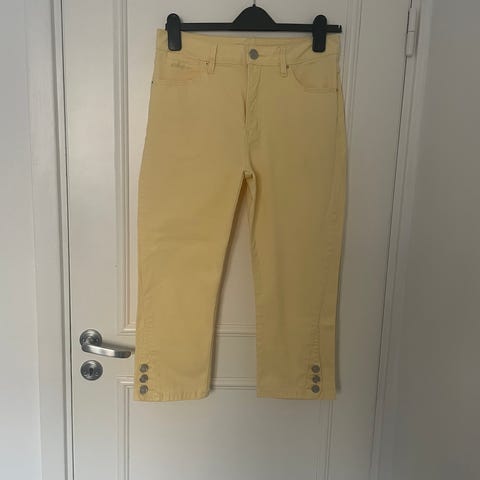 Gerry Weber byxor i strl 38. Klassisk modell. Midjemått 72 cm, osprättade fickor fram, litet sprund nertill på byxbenen, tillhörande skärp. Avhämtning eller frakt.