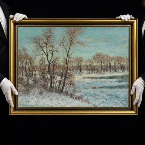Lars Lerin - akvarell vinterlandskap med hus och björk