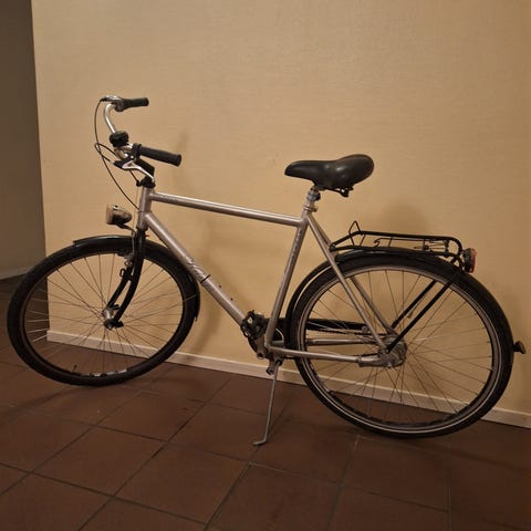 Crescent city stadscykel för herr med ramstorlek 56 cm och 28" hjul. 3 växlar. Pakethållare bak, skärmar och kedjeskydd. Utrustad med handbroms fram och fotbroms bak samt reflexer på hjul och pedaler och fram o bak. Passar för vardagscykling i stadsmiljö och pendling på asfalt och cykelvägar. Batteriljus fram och bak. Lås med 2 nycklar. Dubbelbottnade fälgar med bra däck. Ringklocka. Cykeln är I bra skick och nyservad och nytvättad.