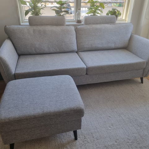 Säljer två stycken Mio County 2,5‑sits soffor i klassisk skandinavisk design – perfekt för vardagsrum eller större sällskapsyta! Bekväma sittdjup och vinklade armstöd, stilrena och lätta att matcha med inredning.