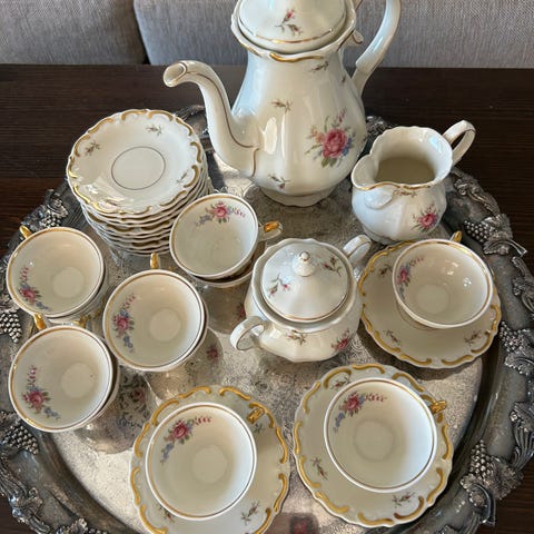 Kaffekoppar med fat porslin blommönster vit 6-pack