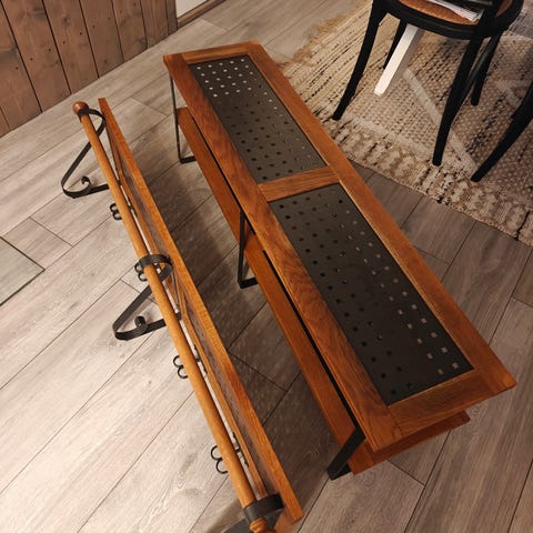 Säljer vår hallförvaring med en hatthylla med tre lådor och krokar för jackor samt sittbänk med plats för skor och förvaring i lådorna. Obs tyget på sittkudden har lite fläckar som inte gått bort i 40 tvätt men kanske går om man är envis med fläckborttagning. Hatthyllan hänger man på en medföljande träregel som enkelt skruvas i väggen bakom.