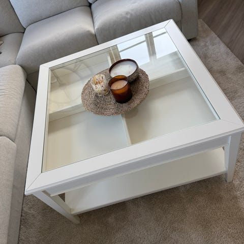 Robust soffbord med förvaring 80x80x52 cm (BxDxH).