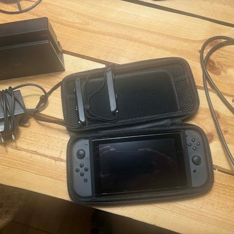 Nintendo Switch spelkonsol med Joy-Con-handkontroller i färgerna neonröd och neonblå. Konsolen levereras med dockningsstation, Joy-Con-remmar och Joy-Con-hållare. Tillbehör inkluderar ett fodral med Mario Kart-motiv som skyddar konsolen vid förvaring och transport. Systemet är avsett för spel i både bärbart och stationärt läge och kan användas för olika typer av Nintendo Switch-spel. Två spel.
