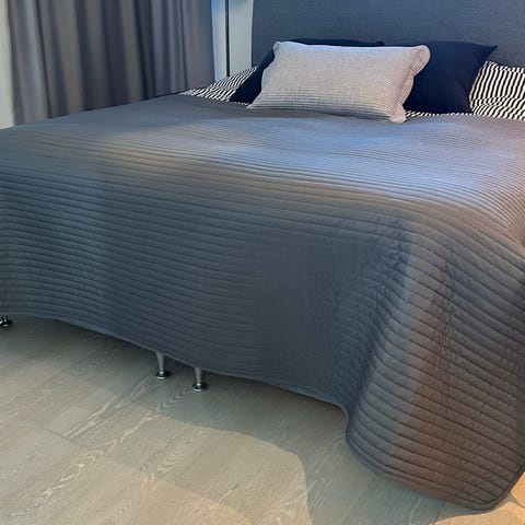 Ellos överkast med stjärnmönster i grått och vitt. Mönstret är vändbart med en ljus sida och en mörkare sida. Överkastet är tillverkat i Portugal enligt märkningen på etiketten. Passar som sängöverkast i sovrum och ger ett enhetligt intryck över sängen. 256x247