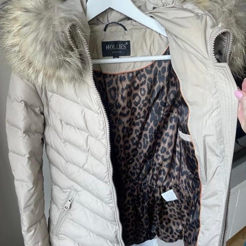 Fodret inne är helt opåverkat och ärmar etc är i fint skick. Fjäderfyllning som värmer. Äkta pälskant