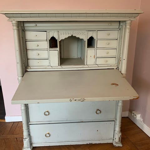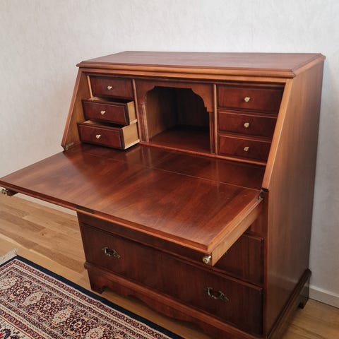 Sekretär trä brun med målade dörrar