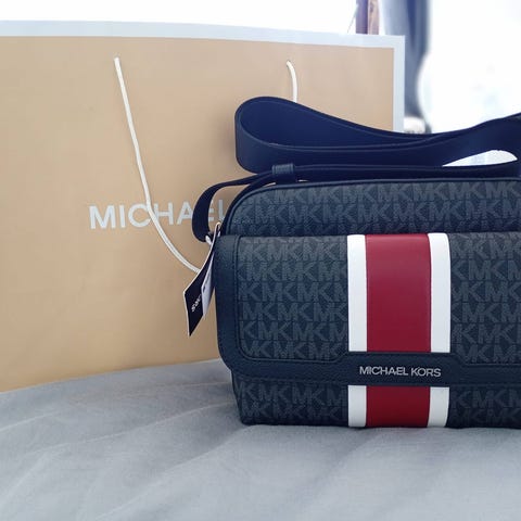 Michael Kors axelremsväska för kvinna i brunt läder. Väskan har en klaff med rem och rund MK-logga i metall framtill. Axelremmen består av kedja med läderpartier upptill för bekvämare bärande på axeln. Modellen är liten till medelstor och passar för vardag eller enklare tillfällen när endast det viktigaste behöver tas med, som mobil, plånbok och nycklar. Insidan är organiserad med fack som hjälper till att hålla innehållet på plats. Materialet är slätt läder med synliga sömmar längs kanterna.