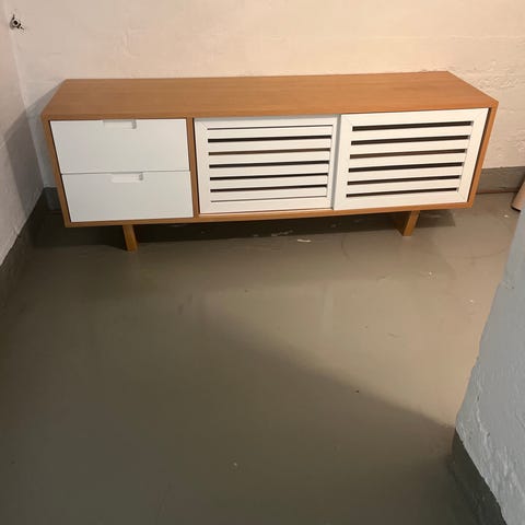 Byrå ur Ikea PS-kollektionen från 1995. Design Thomas Sandell. Björkfanér och blågrön lack, MDF. B 75 cm, D 48 cm, H 76 cm. Fint bruksskick med några små repor, skav. 3 500 kr