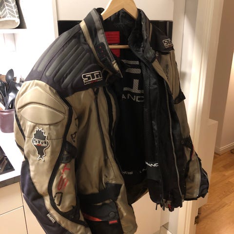 Air ventilerade kläder Strl.XL ihop med original ryggskydd. Passar alla f.r.o.m 181cm upåt. Sparsamt använda