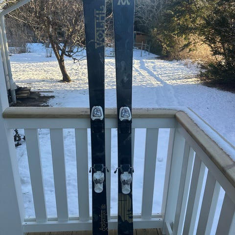 Alpina skidor med bindningar. Skidorna har blå och flerfärgad design med motiv på ovansidan. Utrustade med integrerade bindningar som är monterade på skidorna. Passar för utförsåkning i pist. Lämpliga för användare som söker ett komplett skidpaket med både skidor och bindningar inkluderade.