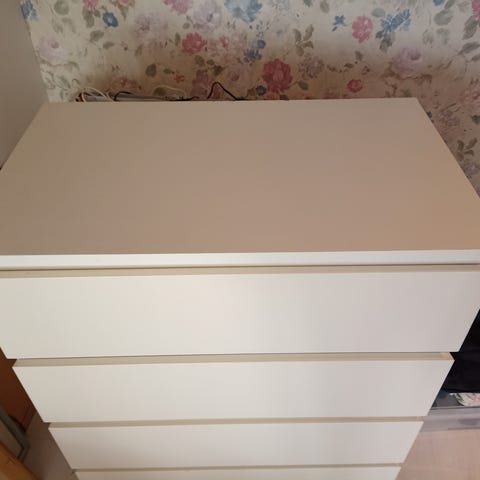 3 st IKEA byråer i vit färg med tre lådor. Byrån har slät ovansida och front utan synliga handtag. Alla 3 är varsamt använda. 2 av dem har fått några ytliga skador men inget som påverkar funktionen. Alla 3 är fräscha i sin vita orginalfärg.