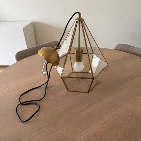 Taklampa från MIO med justerbar kabel så den kan hänga den höjd man vill. Glödlampa ingår inte.