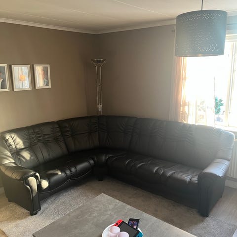 Hörnsoffa läder vinröd