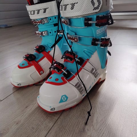 Fina Tour pjäxor från Scott. Utmärkt gå läge. Mondo 30.5 och 334mm i yttersula. Bredare läst.