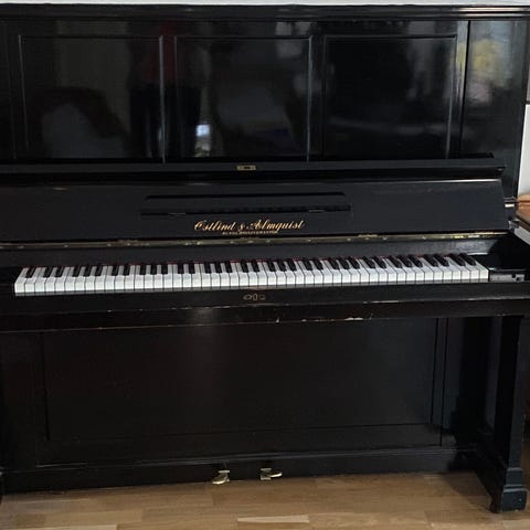 Pianot är i behov av stämning och ett strängbyte. Fin diskant och skönt anslag. Välkomna att höra av er om intresse finns.