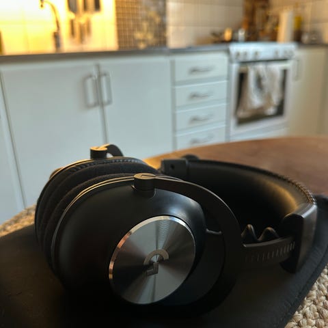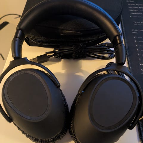 Logitech hörlurar i svart färg. Over-ear-modell. Hörlurarna har knappar och reglage på kåpan samt levereras med USB-mottagare.