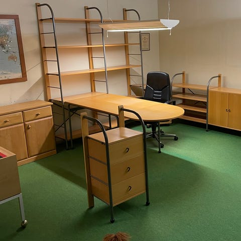Kontorsmöbler, skrivbord, kontorsstol mm. 100 kr per del/stol/hylla/skrivbord/mm.