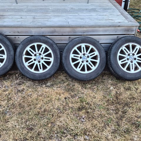 Fungerade bra ihop på min bil, håller lufttryck, ingen obalans. Priset satt efter skick vilket inte är något fantasipris. Inga större skador på fälgar. Skulle blivit tvättade innan foto men vattnet frusit vid garaget.