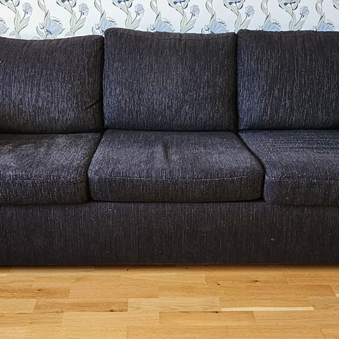 Soffa från Ikea i väl använt skick. Slitningar finns i tyget.