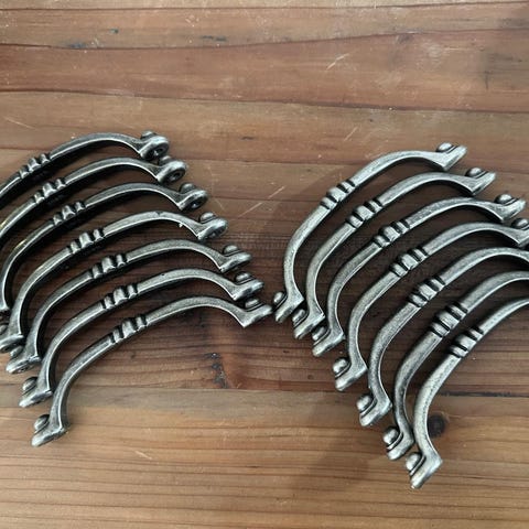 20 st långa IKEA handtag till köksluckor i rosfritt stål. 6 st kortare handtag. Skruvar medföljer.