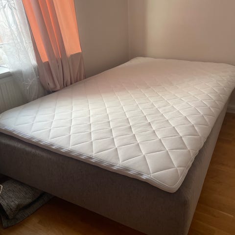 Mjuk säng. Ben medföljer men inte sänggaveln.