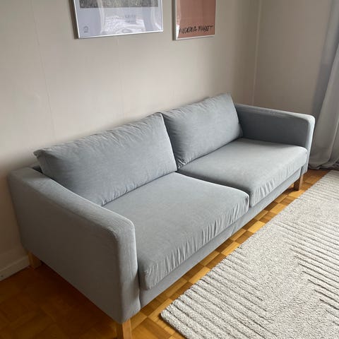 Varit väldigt rädd om soffan och alltid haft filt på sittdynorna. Finns ej några fläckar eller tecken på användning. Som ny!