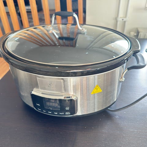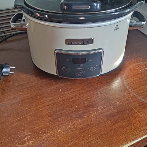 Champion slowcooker i rostfritt stål med glaslock. Utrustad med digital kontrollpanel på framsidan för inställning av tid och värme. Invändig avtagbar oval gryta i svart material, lämplig för långkok, grytor och soppor. Elsladd ansluts på baksidan. Passar för matlagning i hemmet där man vill tillaga maten på låg värme under längre tid.