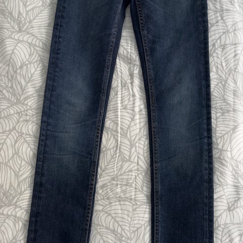 Jeansen har justerbar midja och har gylf med knapp. Se bilderna! Knappt använda.