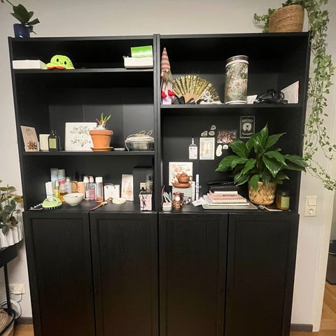 Hyllor i svart massiv furu