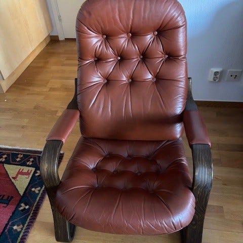 Fåtölj i brunt läder