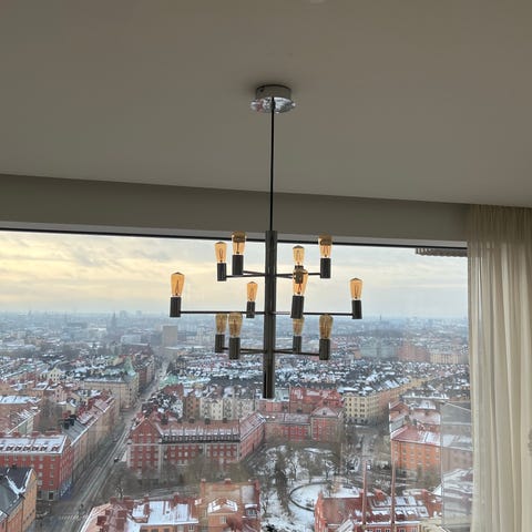 Manola är en elegant ljuskrona med sina 20 armar. Lampan skapar en magnifik atmosfär när den hänger i en hall eller över matbordet. Ljuskällor ingår INTE. Sockel E14. 2400 Kelvin & 170 Lumen. Energiklass för medföljande ljuskälla E. 2,5 watt. IP20. Höjd 67cm och diameter 70cm. Montering tak, ej krok