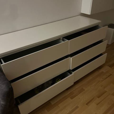 Nordli byrå från IKEA i fint skick. Några mindre skavanker på toppskivan men inget som syns supertydligt (se bilder). Går att köpa ny toppskiva från ikea om man vill det.