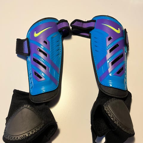 Uhlsport benskydd och knäskydd i svart färg. Skydden har vadderade, formgjutna skyddszoner framtill och är utformade som sleeves som träs på benet. Avsett för användning vid exempelvis fotboll eller annan idrott där extra skydd för underben och knän behövs. Materialet är elastiskt för att sitta tätt runt benet och hålla skyddet på plats under aktivitet.