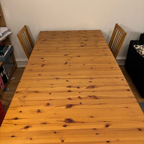 Bord med 3 stolar.