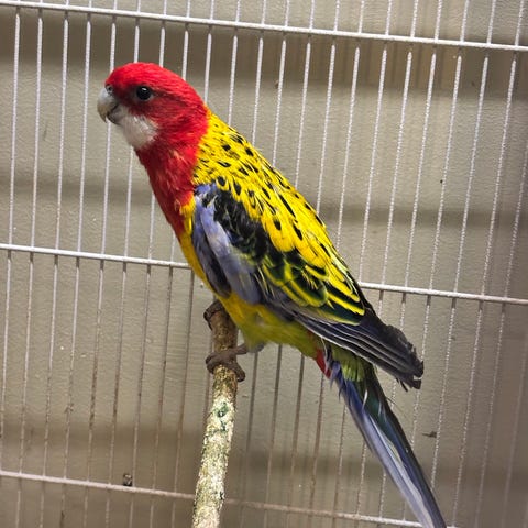 JAG HAR 4 ST JÄTTE FINA ROSELLOR (2 par) MED EN STOR GD RIVAL BUR + TILLBEHÖR.