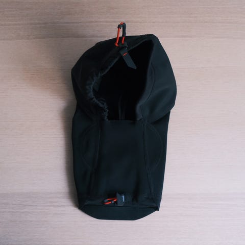 Regnskydd i storlek small, för mindre systemkameror. Regnskyddet är uppackat men oanvänt.